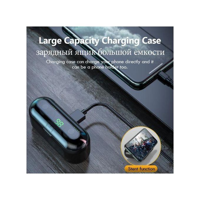 True Wireless Earbuds with Box : Mini box and easy to carry, true wireless connection and charging. Mini box can do mobile phone bracket (The box has a USB interface to your other devices urgently)
